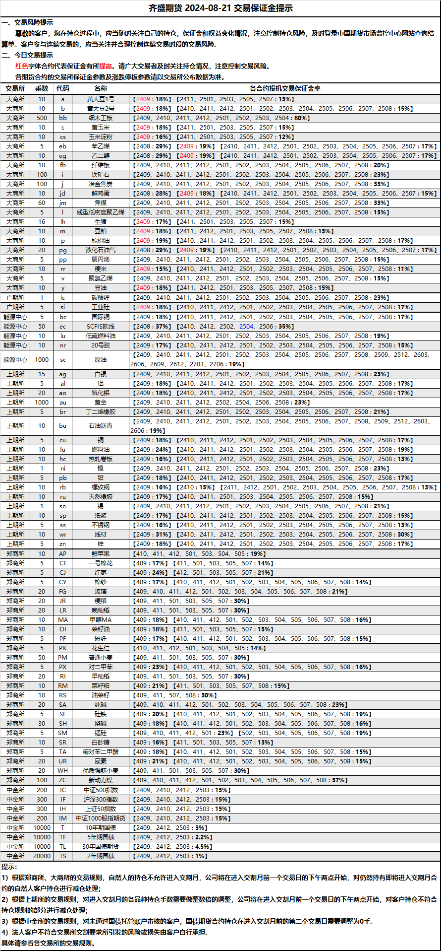 保證金提示