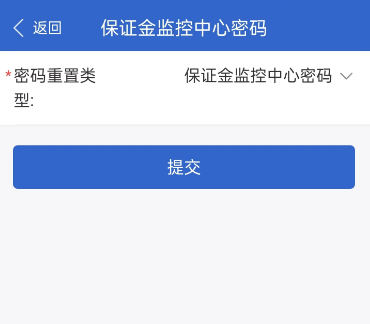 3.密碼重置類型選擇“保證金監(jiān)控中心密碼”