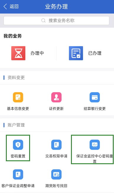掌上營(yíng)業(yè)廳可自助辦理三類賬戶密碼重置: