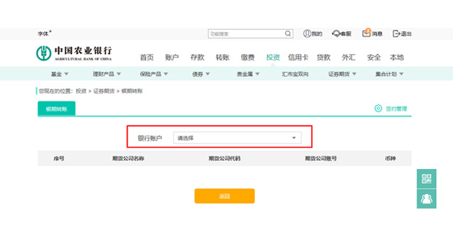 選擇“投資“-”證券期貨“-”銀期轉(zhuǎn)賬“。