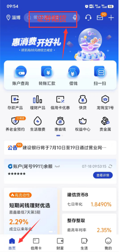 首頁(yè)搜索欄搜索“證券期貨”。