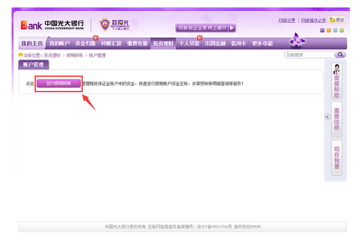 點擊“簽約銀期轉(zhuǎn)賬“。